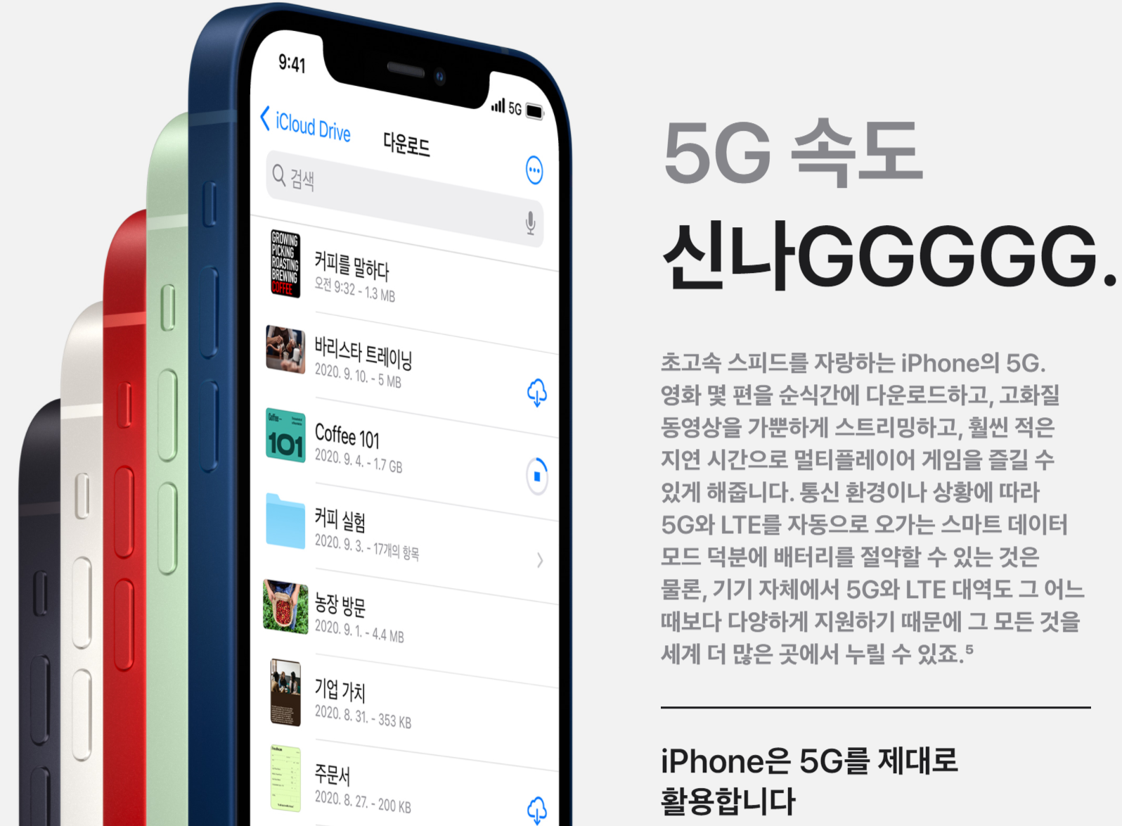 - 아이폰12 시리즈 전 모델 5G를 지원합니다. 당연한 말이지만 LTE 사용도 가능합니다.